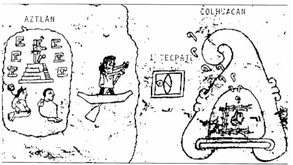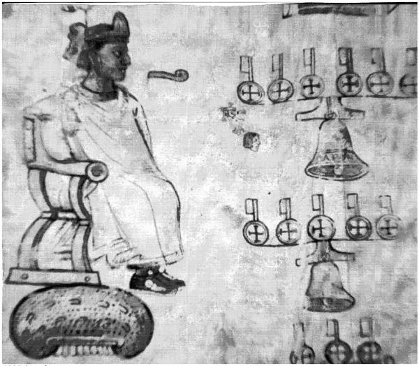sitzt (das Wort Colhuacan = Säulenwagen ist auch darübergeschrieben). Abbildung 5 aus