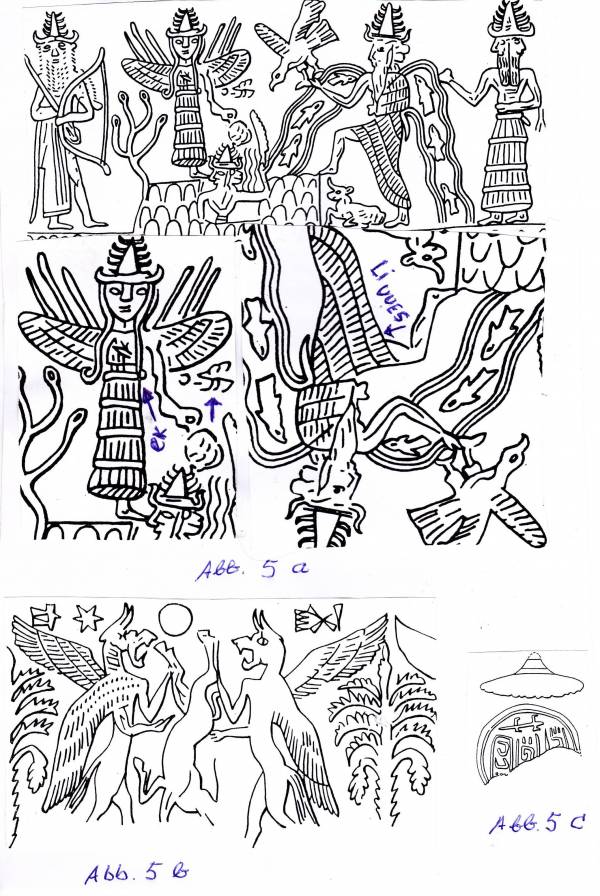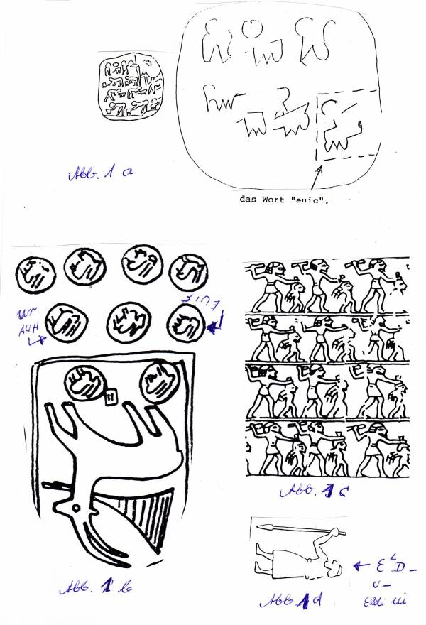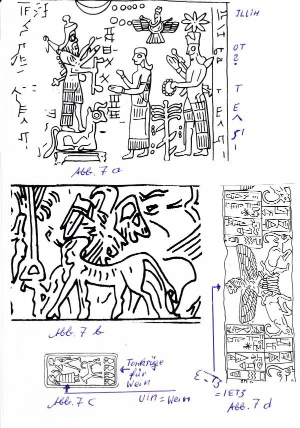 Abb.7d soll ein "Volkssiegel" aus Ugarit sein, 15.-13. Jahrhundert vor Null.