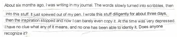 (hier die Übersetzung) "Vor etwa 6 Monaten schrieb ich in mein Tagebuch. Die Wörter