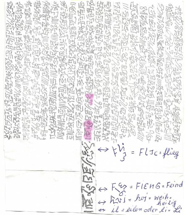 angeordnet, wie bei den ägyptischen Hieroglyphen und eben das gleiche Wort